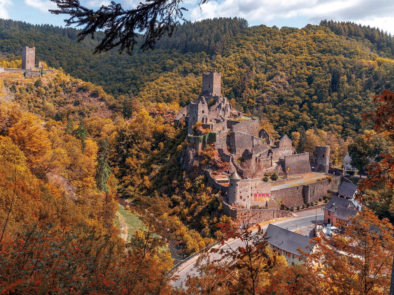 Manderscheid ist aufgrund seiner weithin bekannten Doppelburgen im Liesertal einer der touristischen Hotspots der gesamten Eifel. Das kleine Städtchen hat aber mehr zu bieten als sehenswertes altes Gemäuer. Etwa ein Denkmal für den „Ausrufer“, eine Kirche, die ein Lebensbaum sein will, oder einen in der Szene äußerst beliebten Klettersteig. Die anspruchsvolle Route rund um die Manderscheider Burgen ist wohl die einzige nicht-alpine in Deutschland. Dazu gibt es im Örtchen gleich drei Museen: Eins widmet sich dem Vulkanismus, eins der Stadtgeschichte, in einer Privatsammlung geht es um Steine, Mineralien und mehr. Bei schönem Winterwetter empfiehlt sich zudem einer der prämierten Spazier- und Wanderwege rund ums Städtchen.