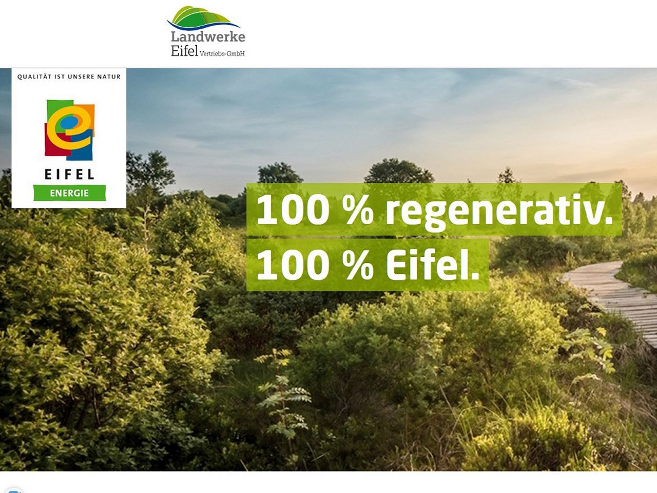- Produkte: Angebot von 100% regenerativen Strom (Landstrom Eifel) und Gas mit einer 10 % igen Biogasbeimischung (Landgas Eifel).