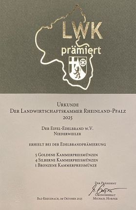 17.10.2025 - EIFEL Edelbrand w.V. erneut LWK prämiert