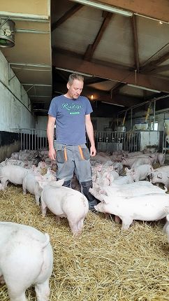Diesen Tierwohl-Anspruch eint ihn mit dem Mötscher Landwirten Markus Ewen. Schon sein Vater baute vor über 20 Jahren zwei Aufzuchtställe, in denen die Ferkel auf Stroh gehalten werden und reichlich Platz zum Freilauf mit frischer Luft und Tageslicht haben. Zudem bietet er den Tieren hier genügend Fress-, Trink- und Spielmöglichkeiten. Die letzten vier Wochen verbringen die Schweine dann in einem modernen Maststall, in dem die Temperatur und Belüftung automatisch reguliert wird. „Durch unsere Art der Haltung kommen wir ganz ohne prophylaktische Antibiotika-Behandlung aus.” Darauf ist der Landwirt stolz – auch weil er dadurch ein Produkt mit guter Qualität liefern kann. Die Tiere kommen als junge Ferkel aus einem Betrieb im Nachbarort auf seinen Hof, das Futter baut er größtenteils selber an. Damit kann er eine transparente Aufzucht garantieren, die sogar über den geforderten QS-Richtlinien liegt.